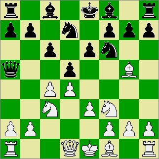 1.d4 d5 2.c4 e6 3.Nc3 Nf6 4.Bg5 Nbd7 5.e3 c6 6.Nf3 Qa5 7.Nd2 Bb4 8.Qc2